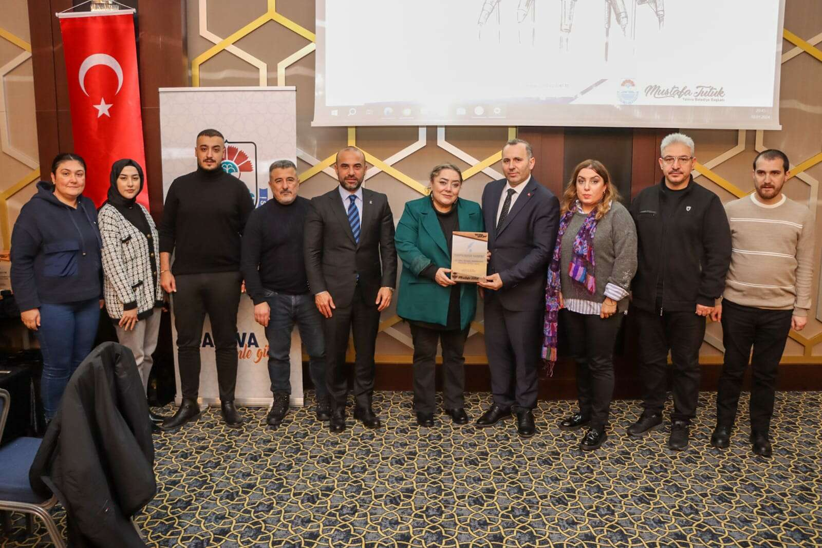 Başkan Tutuk, toplantının sonunda günün anısına Yalova Hayat Gazetesi İmtiyaz Sahibi Süheyla Gözdereliler ve ekibine Yalova Kağıdı üzerine işlenmiş bir plaket takdim etti.