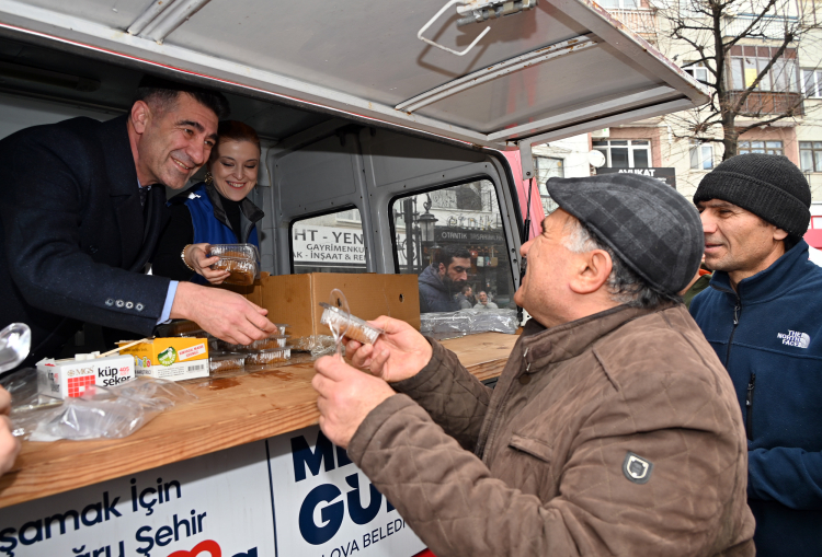 Yalova Belediyesi’nden 6 Şubat depreminin yıl dönümünde vatandaşlara helva ikramı