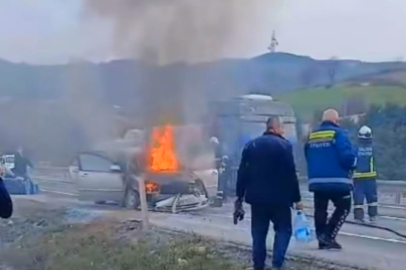 Yalova Bursa Yolu üzerinde panik yaratan araç yangını