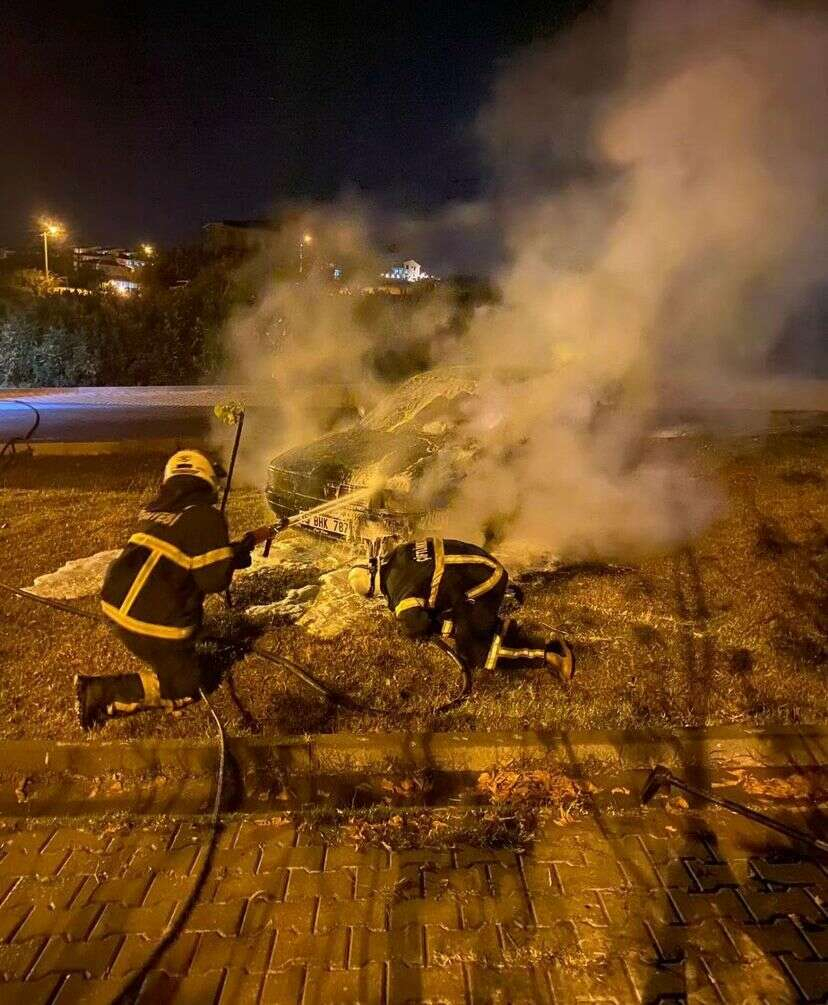 Yalova Çiftlikköy'de otomobil alevler içinde kaldı