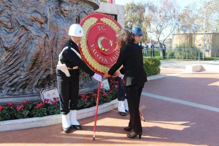 Yalova’da Cumhuriyetin 100. Kuruluş Yıldönümü ve Cumhuriyet Bayramı kutlamaları düzenlenen törenle başladı.15 Temmuz Demokrasi ve Cumhuriyet Meydanı’nda gerçekleştirilen törende Vali Dr. Hülya Kaya, Karamürselbey Eğitim Merkezi ve Garnizon Komutanı Dz. Alb. Cenk Topuz ve Yalova Belediye Başkanı Mustafa Tutuk, Atatürk heykeline çelenk sundu.
