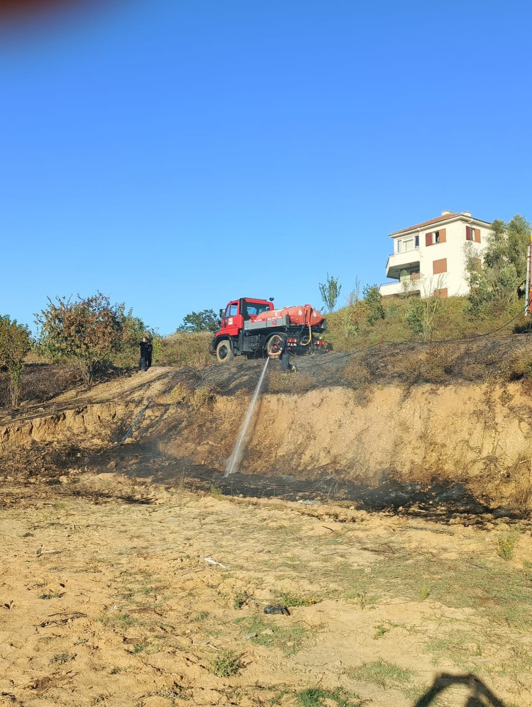 Akköy’de çıkan arazi yangınına da intikal eden itfaiye ekipleri, alevleri söndürerek soğutma çalışması gerçekleştirdi.