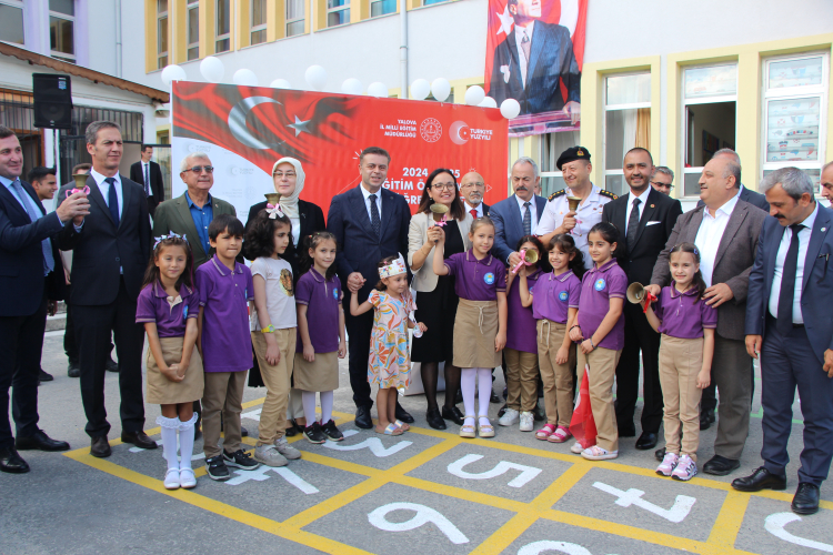 2024-2025 eğitim ve öğretim yılı, Yalova Rahmi Tokay İlkokulu ve Ortaokulu’nda düzenlenen törenle başladı. Yeni ders yılının başlangıcını simgeleyen zilleri ise Yalova Valisi Dr. Hülya Kaya, AK Parti Yalova Milletvekili Meliha Akyol, Yalova Milli Eğitim Müdürü Halil İbrahim Akmeşe ile il protokolü birlikte çaldılar