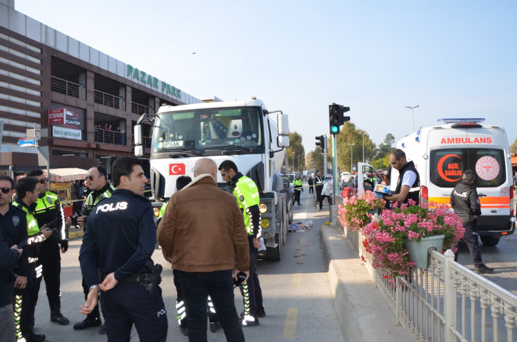 Feci kaza bugün sabah saat 11: 00 sularında Yalova merkez Yalı Caddesi Kapalı Pazaryeri önündeki trafik lambalarında meydana geld Alınan bilgiye göre yolun karşısına geçen 86 yaşındaki Giresun doğumlu S.Ö. adlı yaşlı kadın kırmızı ışıkta geçti. Bu sırada Bursa yönüne doğru giden 116 BBC 24 plakalı beton mikseri yaşlı kadını fark etmeyerek altına aldı.