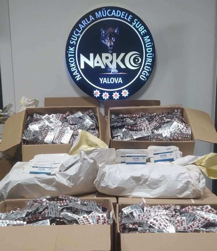 Edinilen bilgiye göre, Yalova İl Emniyet Müdürlüğü Narkotik Suçlarla Mücadele Şube Müdürlüğü ekipleri, İstanbul'dan Yalova'ya uyuşturucu madde sevkiyatı yapan bir araç tespit etti. Araç, Altınova yol kontrol noktasında durduruldu. Araç sürücüsü K.K., polis ekiplerinin şok uygulaması sonucu etkisiz hale getirilerek gözaltına alındı. Araç içerisinde yapılan aramada, 24 ayrı ambalajlanmış koli içerisinde 335 bin 300 adet sentetik ecza grubu hap ele geçirildi.