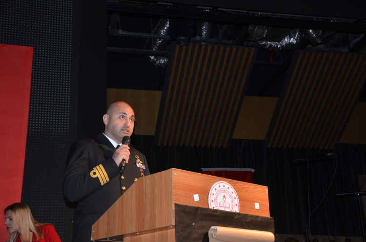 Saygı duruşu ve İstiklal Marşı’nın okunmasının ardından başlayan programda günün anlam ve önemini belirten konuşması Yalova Garnizon Komutanlığı’nda görevli Binbaşı Ergün Karlı gerçekleştirdi. Binbaşı Ergün Karslı’nın duygu yüklü konuşması takdir topladı.
