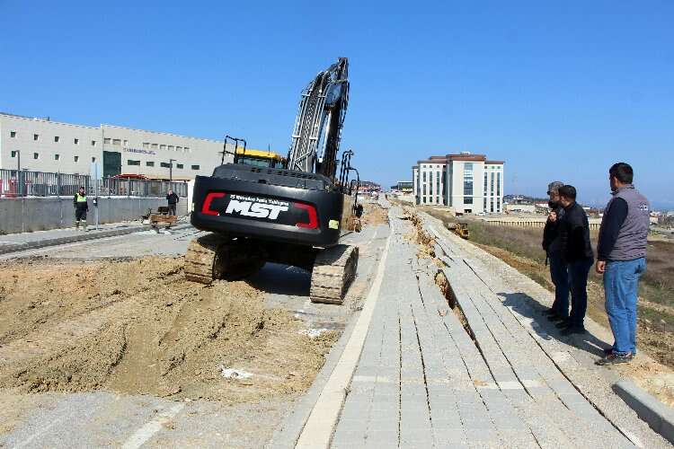 Yalova gündemindeki en sıcak maddelerin başını çeken Yalova Eğitim ve Araştırma Hastanesi’nin önündeki yolda yaşanan çökme için somut adım atılmaya başladı. Bu çerçevede ilk olarak yolun çöken bölümünde kalan elektrik, su, kanalizasyon ve iletişim hatlarının nakil çalışmasının startı verildi. Yalova Belediyesi kendi hatlarının taşınması için iş makineleri ile bölgede hızlı bir çalışma yürütüyor.