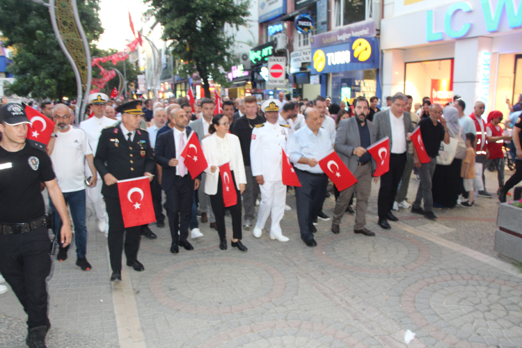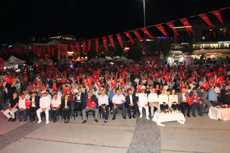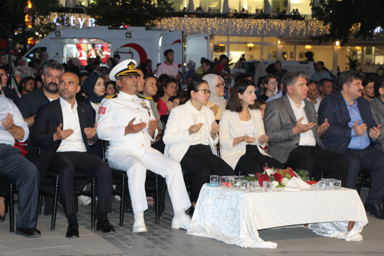 Ardından Vali Dr. Hülya Kaya, günün anlam ve önemini belirten bir konuşma yaptı. Kaya, 15 Temmuz gecesinde şehit olan 251 şehidi rahmetle andığını ve yanı başlarında şehit olan kardeşlerini gördüğü halde geri durmayan, cesaret ve fedakârlıkla hareket eden 2 bin 742 kahraman gaziye de minnetlerini sunduğunu söyledi. Cumhurbaşkanı Recep Tayyip Erdoğan’ın meydanlara çıkın çağrısı üzerine milletin bağımsızlığa sahip çıktığını ifade eden Kaya, şöyle konuştu;