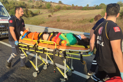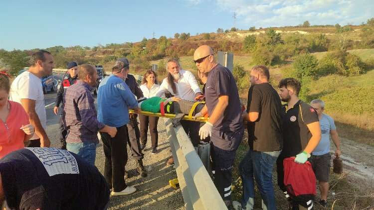 Kazanın etkisiyle savrulan motosiklet bariyerlere çarptı. Motosikletin üzerinde bulunan sürücü Hakan Y. ve motosiklette artçı olarak bulunan Hülya B. (35) bariyerlerin üzerinden yol kenarına savruldu. Çarpmanın etkisiyle motosiklet ise yolda bir süre savrulduktan sonra yol kenarına devrildi.