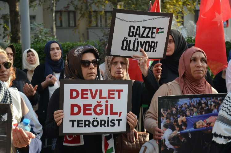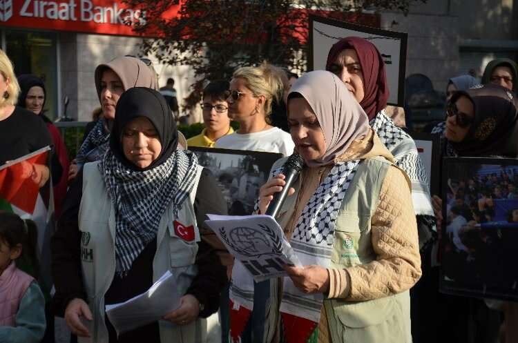 ‘’Bizler vicdan sahibi sivil toplum örgütlerinin kadın temsilcileri ve anneler olarak İsrail’in Gazze’de 17 gündür sürdürdüğü katliama ‘Dur’ demek için buradayız. Apartheid rejimi yaklaşık 100 yıldır Filistinlilerin topraklarını işgal ederek defalarca katliam gerçekleştirdi. İki milyondan fazla insanın yaşadığı Gazze Şeridi’ne ise 17 yıldır abluka uygulayarak bölgeyi adeta bir toplama kampına çevirdi. Gazze Şeridi’ne yönelik yıllardır devam eden bombalı saldırılarda sahilde piknik yapan aileler ve sokakta oynayan çocuklar öldürüldü, ibadethaneler bombalandı, tedavi bekleyen hastalar öldürüldü. Gazze’de hiçbir yer güvenli değil.