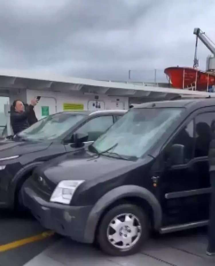 Dalgaların şiddetiyle birbirine çarpan araçlar zarar gördü. 340 yolcu ve 69 aracın bulunduğu feribotta fırtına sırasında yaşananlar güvenlik kameralarına da saniye saniye yansıdı. Görüntülerde dalgalar fırtınanın da etkisiyle çok fazla yükselerek araçlara zarar veriyor. Bu sırada içeride bulunan yolcuların yaşadığı tedirgin anlar da görülüyor.