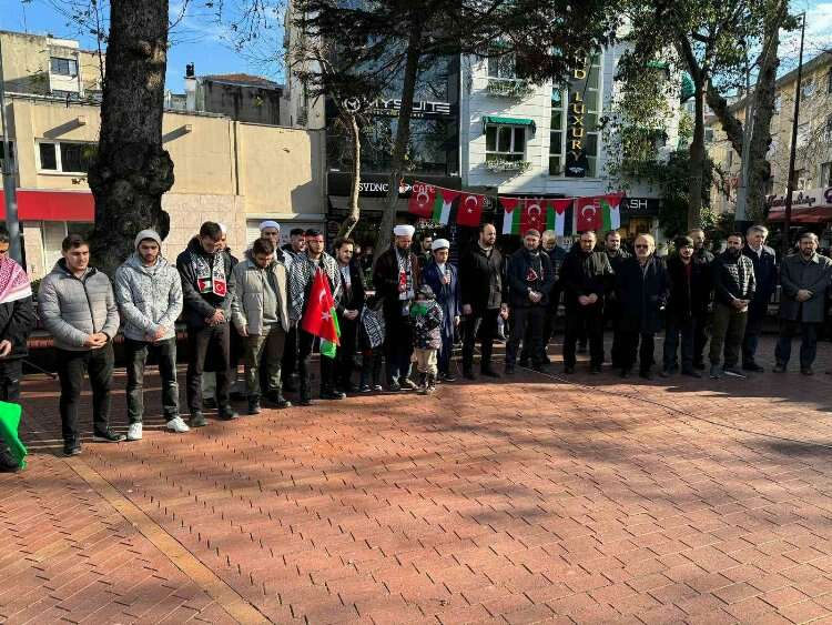 Yalova’da sivil toplum kuruluşları tarafından, İsrail’in Gazze Şeridi’ne yönelik saldırıları protesto eden vatandaşlar acil ateşkes çağrısı için bir araya geldi.