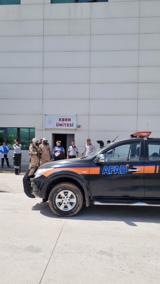 AFAD ve UMKE 112 KBRN ekipleri tarafından Hastane Afet Planı çerçevesinde kimyasal gaz ölçümleri yapılan vakalar, KBRN ünitesine alındı.