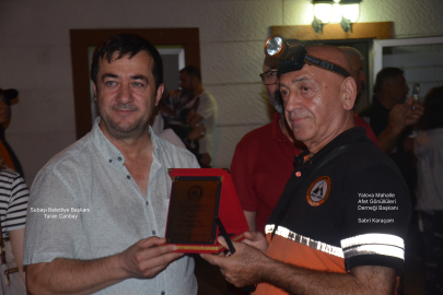 Anma töreni ardından Mahalle Afet Gönüllüleri Derneği Başkanı Sabri Karaçam tüm MAG-DER ailesi adına Subaşı Belediye Başkanı Turan Canbay'a büyük destekleri ve katkılarından dolayı teşekkür ederek plaket takdim etti.