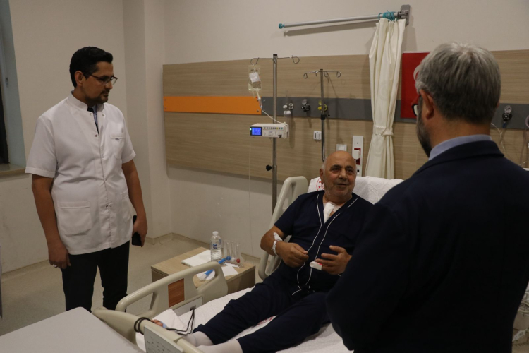 Ameliyat sonrası servise alınan İlyas Yalçın’ı ziyaret eden Yalova İl Sağlık Müdürü Uzm. Dr. Halim Ömer Kaşıkcı, geçmiş olsun dileklerini ileterek operasyonu gerçekleştiren sağlık ekibine teşekkür etti. Kaşıkcı, yaptığı açıklamada, “Sadece kalp ve damar cerrahisinde değil, tüm cerrahi branşlarda en büyük ve en nitelikli ameliyatlardan biri olan bypass cerrahisini ilk kez Yalova’da gerçekleştirmiş olmanın gururunu yaşıyoruz. 4 damar değişen hastamızı iyileşmiş olarak görmekten de son derece mutluyuz. İnşallah hizmetteki çıtayı her gün daha yukarı taşıyarak, her branşta nitelikli ameliyatlarla hastanemizi ve Yalova’mızı sağlıkta zirveye taşıyacağız” ifadelerini kullandı.