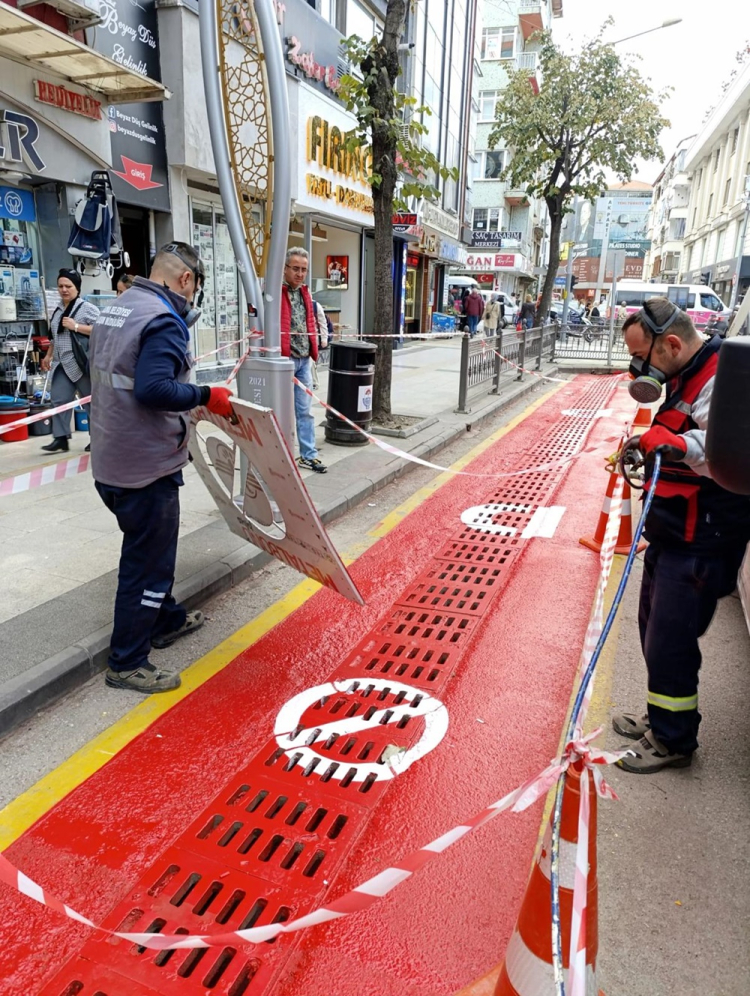 Cumhuriyet Caddesi Atatürk İlkokulu önü ve İstanbul Caddesi girişinde bulunan indirme bindirme ceplerinde yapılan boyama çalışmasıyla durakların görünürlüğü arttırılarak uygunsuz araç park edilmesinin önüne geçilmesi planlanıyor.
