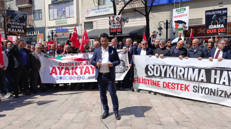 Yalova Merkez Camii önünde Cuma Namazı çıkışında yapılan basın açıklamasına Yalova Üniversitesi Rektörü Prof. Dr. Mehmet Bahçekapılı da katılarak desteğini gösterdi. Yalova Filistin’e Destek Platformu ile Yalova Üniversitesi iş birliğinde düzenlenen açıklamada, İsrail’in Filistinlilere yönelik idam uygulamalarına sert tepki gösterildi.
