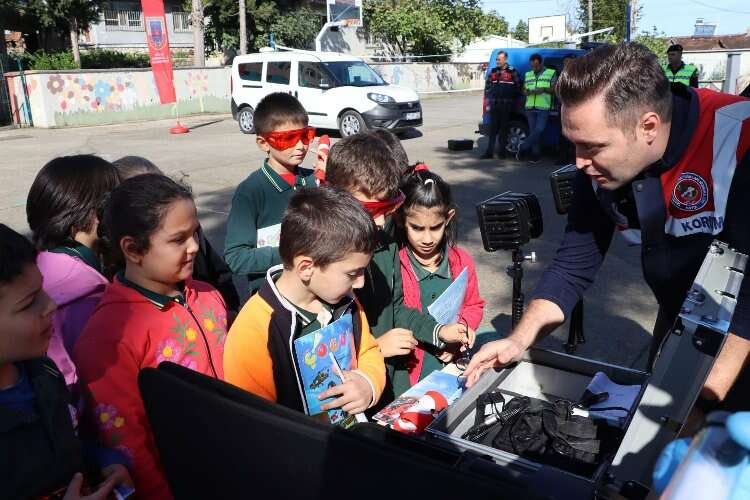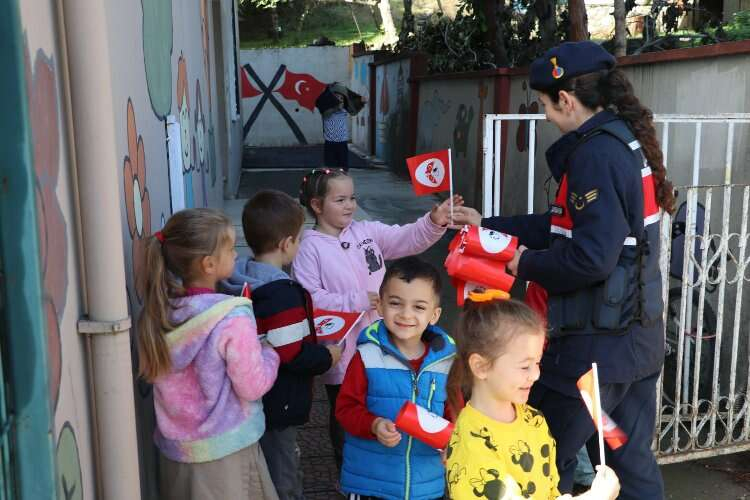 Öğrencilere ayrıca Türk bayrakları da dağıtıldı. Ziyarette, jandarma ekipleri öğrencilerle yakından ilgilendi. Öğrencilerin sorularını yanıtlayan jandarmalar, onlara jandarmanın tarihçesi, görevleri, eğitimi, silahları ve araçları hakkında anlatımlarda bulundu.