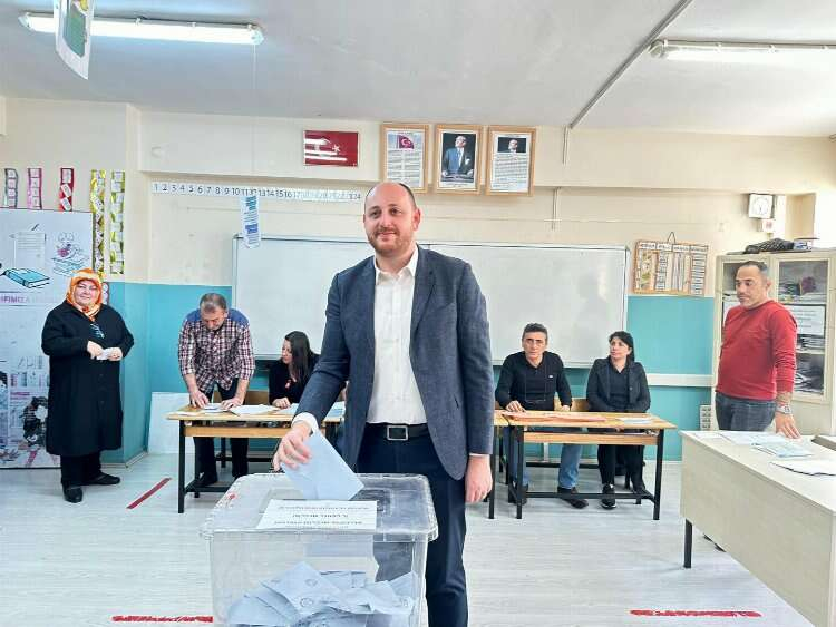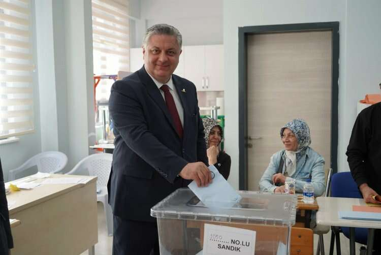 Yalova Belediye Başkanı ve Cumhur İttifakı Belediye Başkan Adayı Mustafa Tutuk ise oyunu Öğretmen Yusuf Ziya İlköğretim Okulu’nda 1236 nolu sandıkta kullandı.