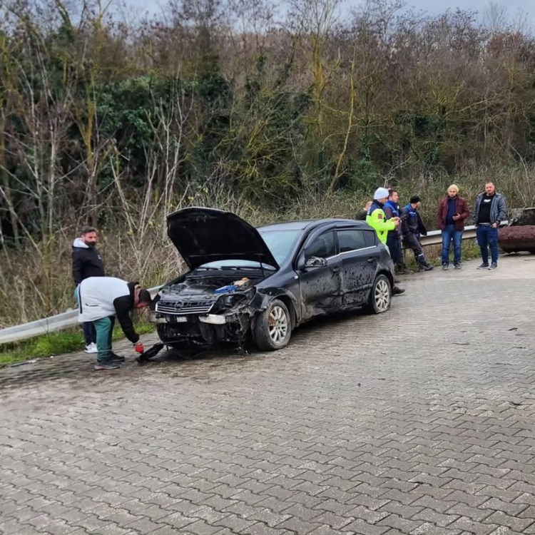Subaşı-Altınova yolunda meydana gelen trafik kazasında, seyir halindeki bir otomobil, sürücüsünün direksiyon hakimiyetini kaybetmesi sonucu kontrolden çıkarak bariyerlere çarptı. Çarpmanın etkisiyle araç sürüklendikten sonra durabildi.