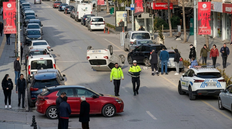 Yalova merkez Fatih Caddesi’nde sürücüsünün direksiyon hakimiyetini kaybettiği otomobil kontrolden çıkarak takla atarak ters döndü. Aracın sürücüsü kazadan hafif yaralı kurtuldu. Kaza nedeniyle Yalova merkezde trafik kilitlendi.