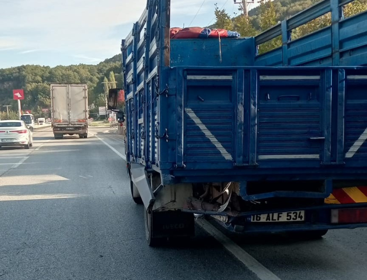 Yalova- Bursa yolu Süpürgelik mevkiinde meydana gelen trafik kazasında otomobil, aynı yönde giden kamyona arkadan çarptı. Kazada, yaralanan olmazken araçlarda maddi hasar meydana geldi.