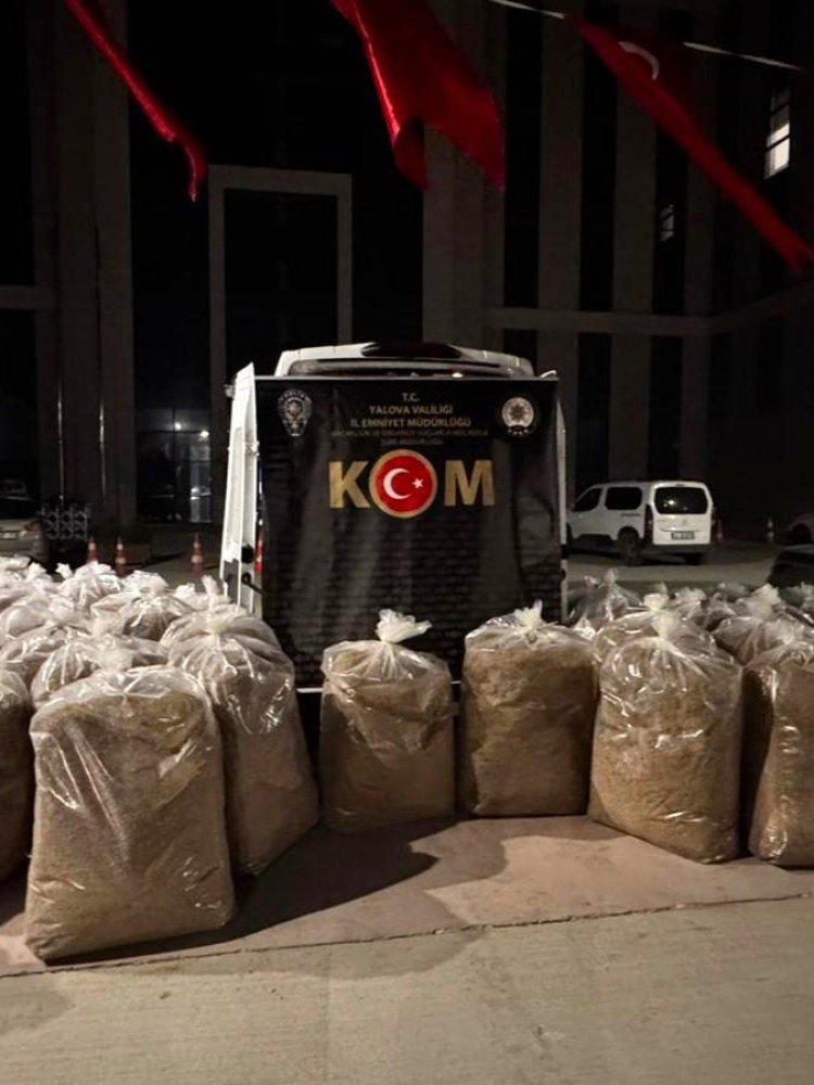 Yalova Emniyet Müdürlüğü tarafından 16- 20 Aralık tarihleri arasında düzenlenen operasyonlarda 46 bin makaron ve toplam 1 buçuk ton kıyılmış açık tütün yakalandı. Olaylarla ilgili 3 zanlı gözaltına alındı.