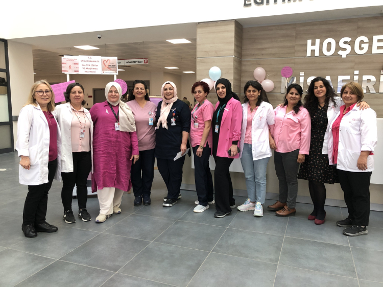 Eğitim Birimi ve Kanser Erken Tanı Birimi tarafından organize edilen stantta; hasta-hasta yakını ve personellere değerli bilgiler verilip, broşürler dağıtıldı. Yapılan bilgilendirmelerde kendi kendine meme muayenesinin önemi vurgulandı ve hazırlanan materyallerle nasıl kendine meme muayenesi yapılacağı konusunda uygulamalı gösterim yapıldı.