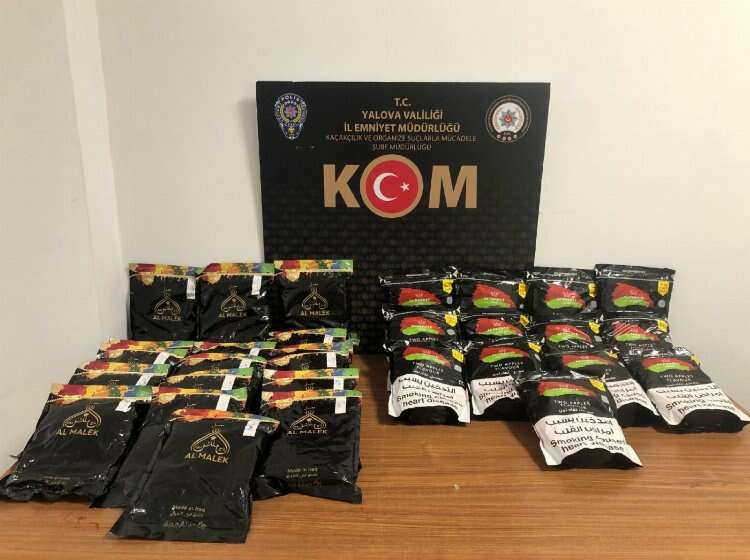 Yalova Emniyet Müdürlüğü Kaçakçılık ve Organize Suçlarla Mücadele Şube Müdürlüğü, kaçakçılığın önlenmesi kapsamında yaptığı analiz çalışmaları neticesinde kente kargo aracılığıyla elektronik sigara gireceği ve alıcısının İ.G. isimli şahıs olduğu tespit edilen 2 adet kargo paketini takibe aldı. Kargo paketlerinin teslim alınmasının ardından yapılan operasyonda, paketlerden toplam 39,5 kg ağırlığında gümrük kaçağı nargile tütünü çıktı. Şüpheli İ.G. gözaltına alındı.Yine nargile satışı yaptığı tespit edilen 3 iş yerine baskın düzenleyen ekipler, adli işlem yapılmak üzere toplamda 29 kg 361 gr gümrük kaçağı nargile tütünü ele geçirdi. Ayrıca bahse konu iş yerlerinin nargile satış ve sunum ruhsatı bulunmadığından idari işlem yapılmak üzere İl Tarım Müdürlüğü’nce 101 adet nargile takım seti ve bandrollü 46,7 kg nargile tütününe el konuldu. İş yeri sahipleri hakkında da yasal işlem başlatıldı.