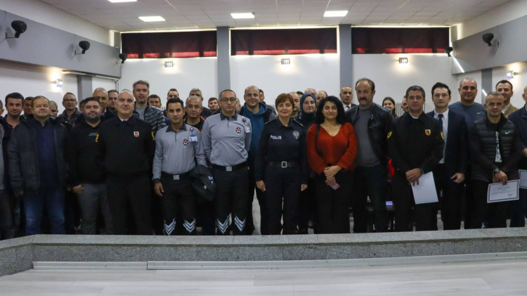 Tersaneler bölgesinde görev yapan özel güvenlik görevlilerine konusunda uzmanlaşmış jandarma ve emniyet görevlileri tarafından eğitim verildi.
