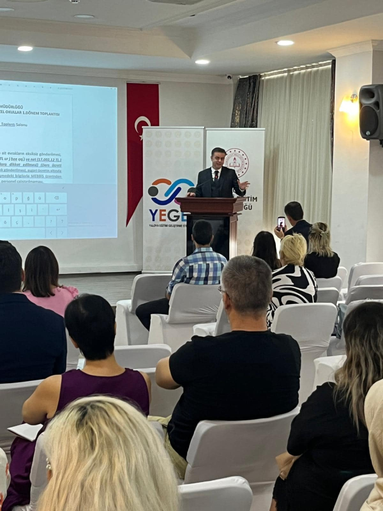 Yalova'da 2024-2025 eğitim-öğretim yılı öncesinde özel okulların sene başı toplantısı, Yalova Milli Eğitim Müdürü Halil İbrahim Akmeşe başkanlığında Yalova Uygulama Oteli'nde yapıldı