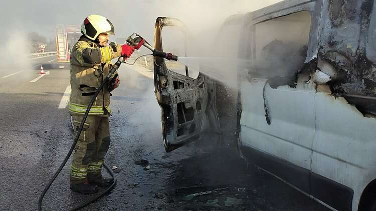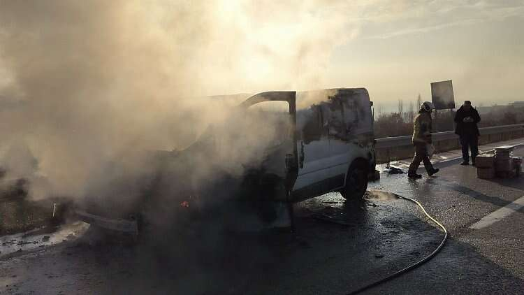 Minibüs sürücüsü B.A. aracını yol kenarına çekerek araçtan indi. Bir anda motor bölümü alev alan minibüs yanmaya başladı. İhbar üzerine olay yerine itfaiye ekipleri sevkedildi. Bursa Büyükşehir Belediyesi ve Yalova Belediyesi itfaiye ekipleri araca müdahale ederek yangını kontrol altına aldı.