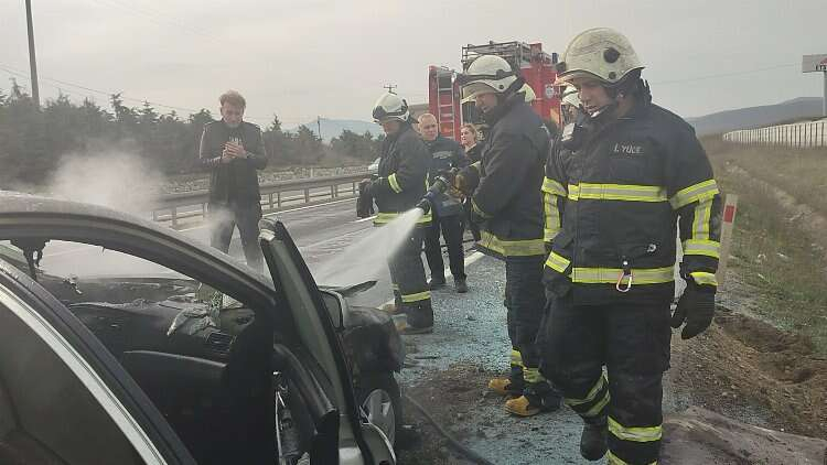 Bir anda alev alan otomobildeki araç yangınına çevreden yetişen diğer sürücüsüler yangın tüpleri ile ve itfaiye ekipleri tarafından müdahale edildi.Olay saat 9.30 sıralarında Yalova-Bursa Karayolu, Süpürgelik Mevkiinde meydana geldi.Alınan bilgiye göre; Yalova’dan Bursa istikametine doğru gitmekte olan 34 EA 52 47 plakalı otomobilin motor bölümünden dumanlar yükselmeye başladı.