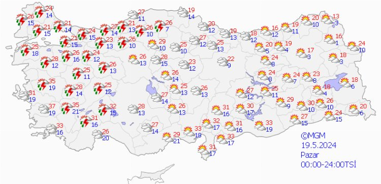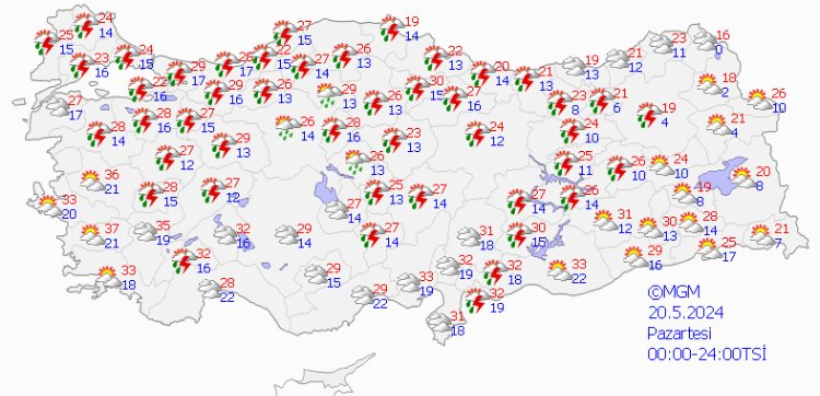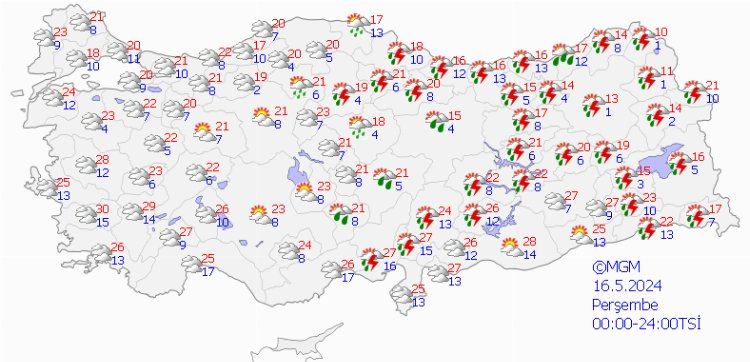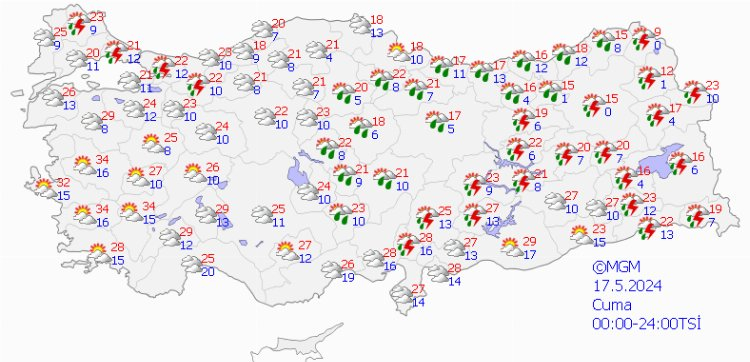 Yurdun bazı yerlerinde bugün beklenen hava durumu şu şekilde: