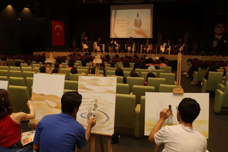 Panele katılan uzman konuşmacılar yağmur suyu hasadı, arıtılmış suların geri kazanımı ve gri su arıtımı gibi konuları derinlemesine ele alarak çözüm yollarını tartıştı. Katılımcılar, panelde uzman ve başarılı uygulama örnekleri ile su ayak izini en aza indirme seçeneklerini öğrenme fırsatı buldu. Yalova Üniversitesi Sanat ve Tasarım Fakültesi 2. ve 3. sınıf resim bölümü öğrencileri, panel devam ederken panelin konularına yönelik resim çalışması yaptı.