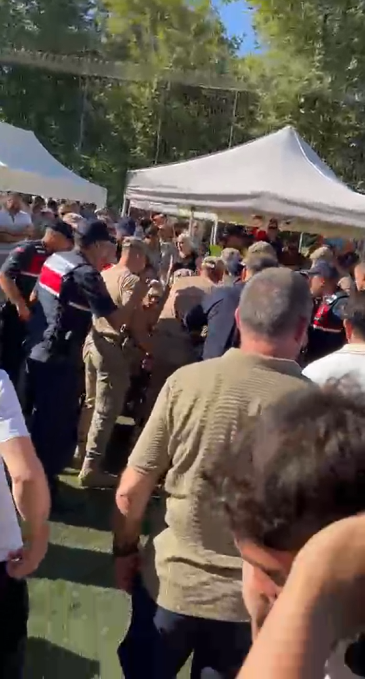 Yalova’nın Çiftlikköy ilçesindeki bir tatil sitesinin mali kurulunda gergin anlar yaşandı. Jandarmaya yumruk attığı ileri sürülen bir kişi gözaltına alınırken, yaşanan arbede güçlükle kontrol altına alındı.