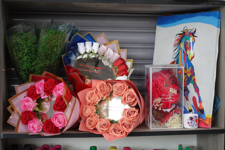 Özellikle son yıllarda ilgi gören kutulu çiçekler ve peluş oyuncak kombinleri, hediye arayan çiftlerin yoğun ilgisini çekiyor.