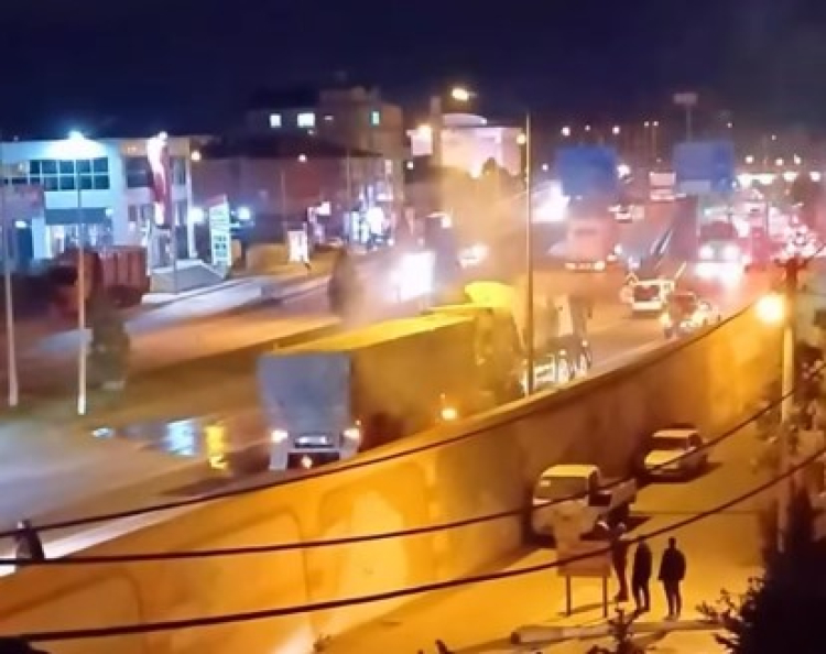 Yalova’da Salı günü gece saatlerinde Dörtyol mevki üstgeçidinde seyir halindeki TIR’ın lastiklerinden alevler yükseldi. Yangın itfaiye ekipleri ve yoldan geçen bir beton mikserinin yardımıyla söndürüldü.
