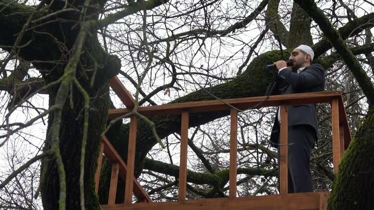 Yılmaz, mescidin yaklaşık 100 yıl öncesinden gelen bir adeti olduğunu belirterek, “Burada bu adetin yaşatılmasını istiyorduk. Yürüyen Köşk’e benzeyen ağacımızla ilgili de hikayemiz var. Mescit inşa edilirken minaresiz inşa ediliyor. Daha sonra yanındaki koca meşe ağacı minare olarak kullanılarak ezanlarımız burada okunuyordu. Biz de bu geleneği sürdürmek adına basit bir yapıyla ağacın üstüne ulaşılabilir hale getirdik” dedi.