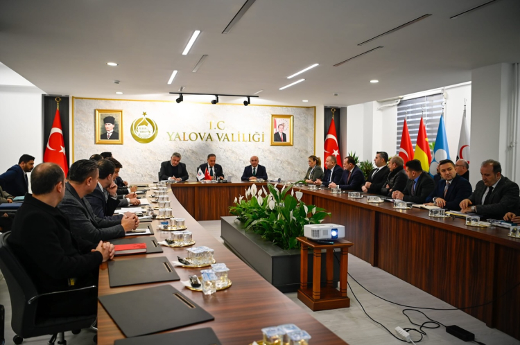 Yalova Valisi Dr. Ahmet Hamdi Usta başkanlığında su krizi toplantısı düzenlendi. Toplantıya DSİ yetkilileri, ilçe kaymakamları, belediye başkanları ve ilgili kurumların yetkilileri katıldı. Toplantı sonrası açıklama yapan Vali Usta, vatandaşlara su tasarrufu çağrısında bulundu.