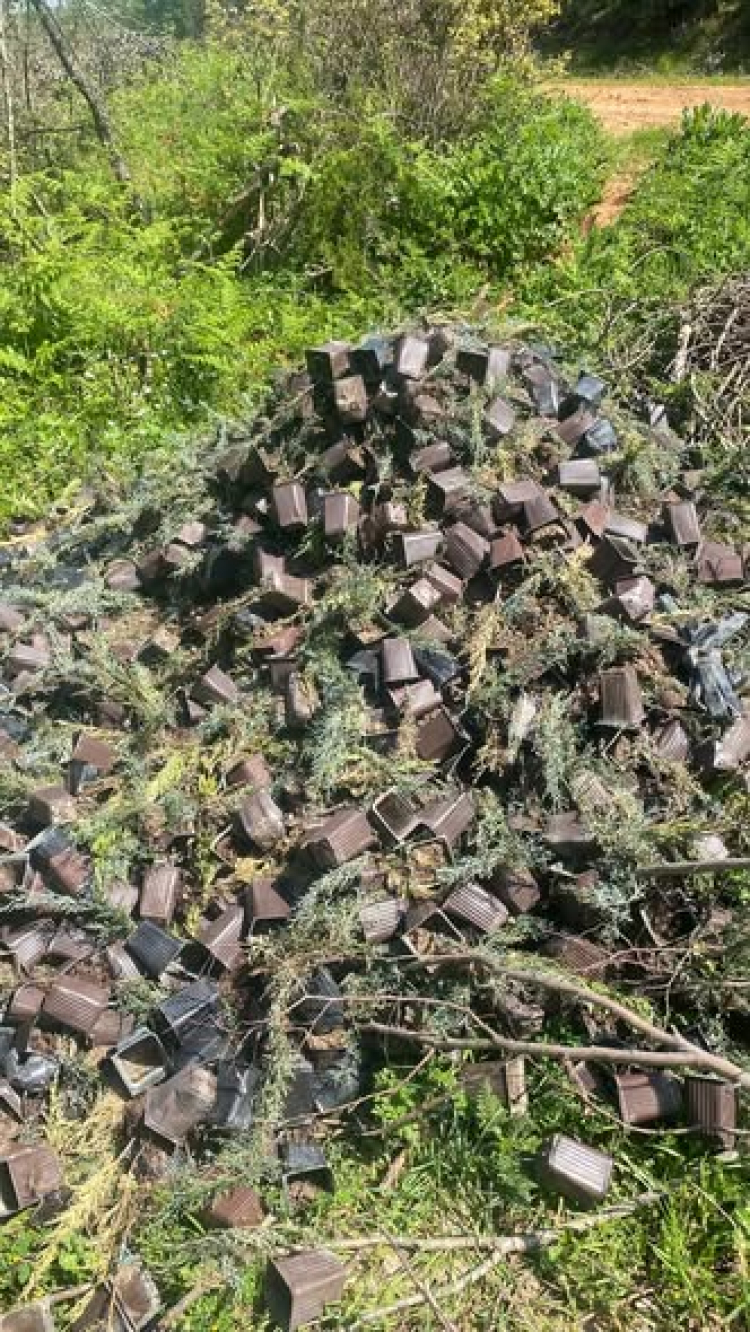 Yalova Paşakent Mahallesi’nde ormanlık alana saksılarıyla birlikte terk edilmiş yüzlerce çam fidanı bulundu. Kamu kaynaklarıyla temin edilen fidanların dikilmek yerine çöpe atılması mahalle sakinlerinin büyük tepkisine neden oldu.