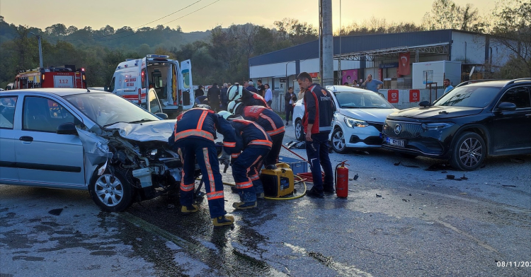 Yalova- Orhangazi yolu üzerinde 3 araç çarpıştı. Kazada aracın içerisinde sıkışan, bir anne ile kızı yaralandı.