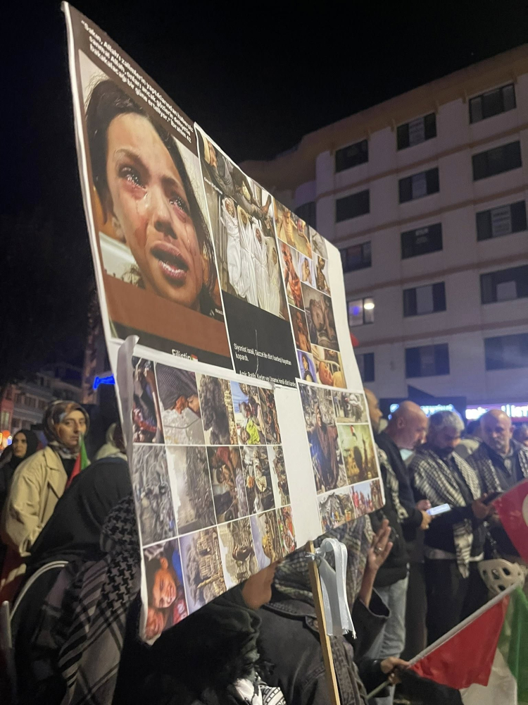 Ellerinde Filistin bayrakları ve pankartlarla toplanan kalabalık “Gazze yalnız değildir”, “Katil İsrail hesap verecek”, “Sumud Filosu onurumuzdur” sloganları attı. Yapılan basın açıklamasında “Sumud Filosu yalnızca bir gemi değildir; insanlığın vicdanıdır. Gazze’ye insani yardım götürmek isteyenlere saldırı, uluslararası hukuka aykırı bir savaş suçudur. Bu saldırıyı lanetliyor, uluslararası kamuoyunu harekete geçmeye çağırıyoruz. Filistin halkının yanındayız” ifadelerine yer verildi.