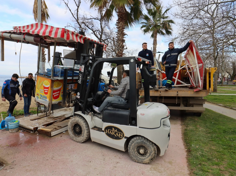 Yalova Belediyesi, Gazi Paşa Caddesi ve Akasya Park çevresinde izinsiz olarak kurulan yiyecek ve içecek stantlarını kaldırdı
