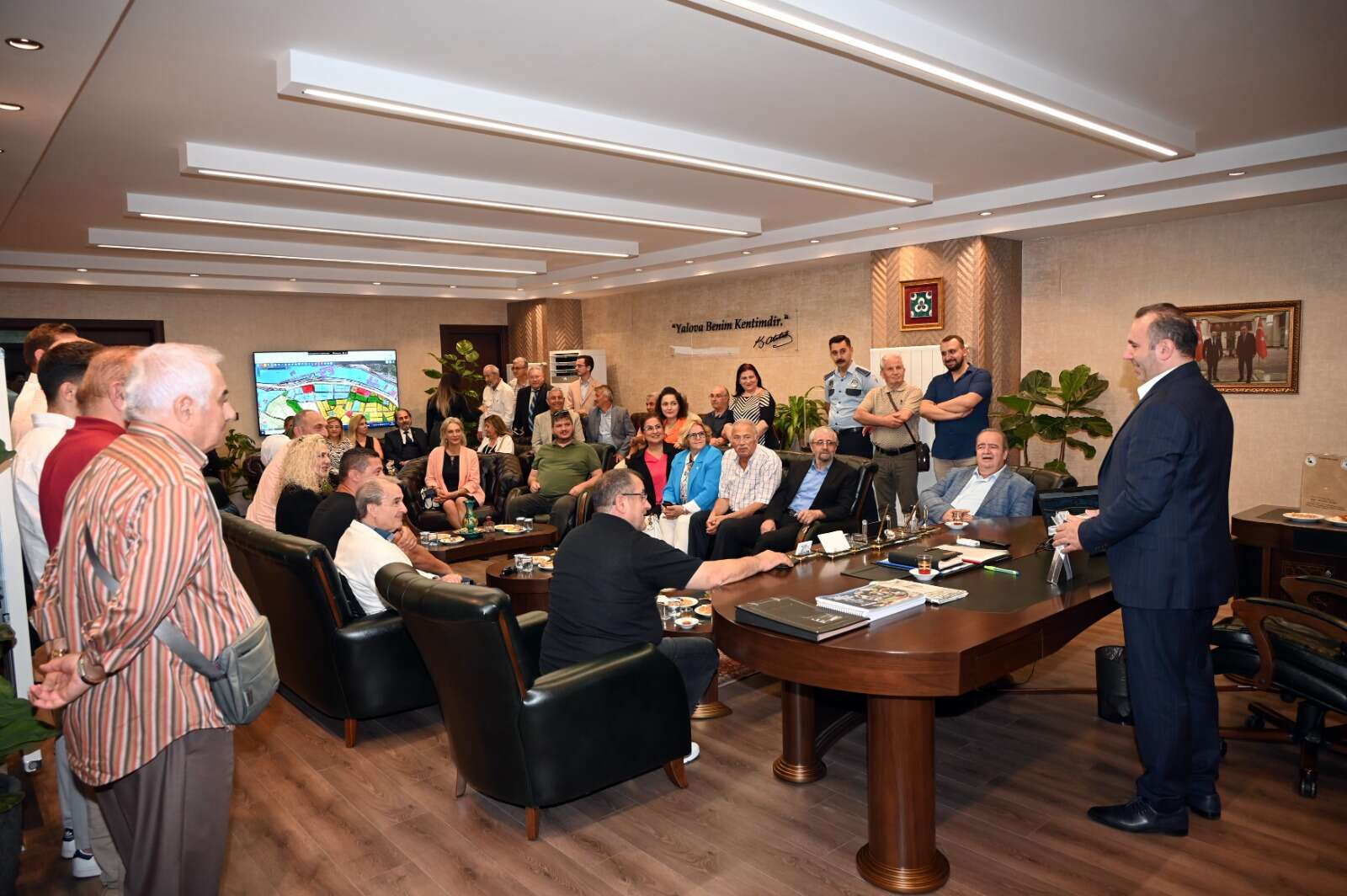 Dernek Başkanı Bahattin Sabahçı ve dernek üyeleri de yapılan ziyarette söz alarak görüşlerini bildirdi. “Sizin gibi çalışkan bir başkana sahip olduğumuz için şanslıyız ve yaptığınız çalışmalar için teşekkür ediyoruz” diyen dernek üyeleri, Yalova Belediyesi ile ortak projeler konusunda da iş birliği yapılması gerekliliğine değindi.