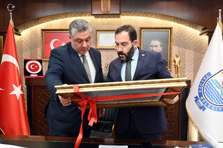 Yalova İl Genel Meclisi Başkanı Hasan Soygüzel, Yalova Belediye Başkanı Mehmet Gürel’e ‘hayırlı olsun’ ziyaretinde bulundu. Konuğunu makamda ağırlayan Başkan Gürel’e ‘Tarihi Yalova Haritası’ tablosu ile kurumun kültür yayınlarından oluşan eserler hediye edildi.