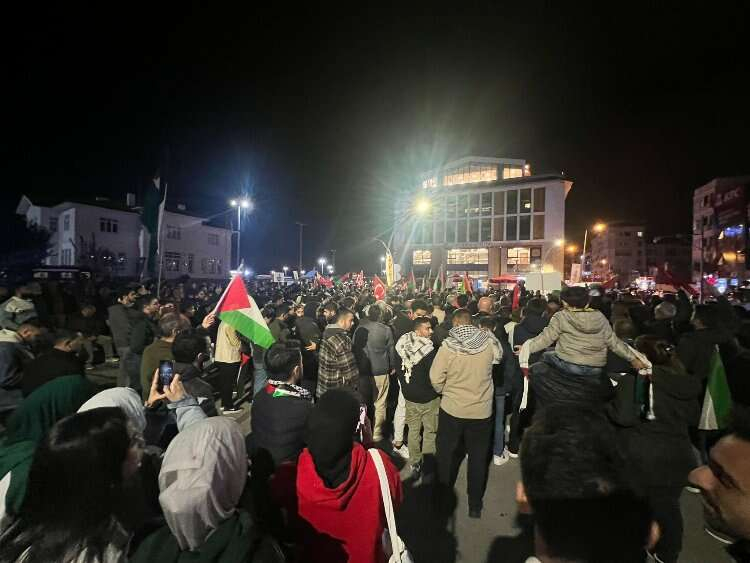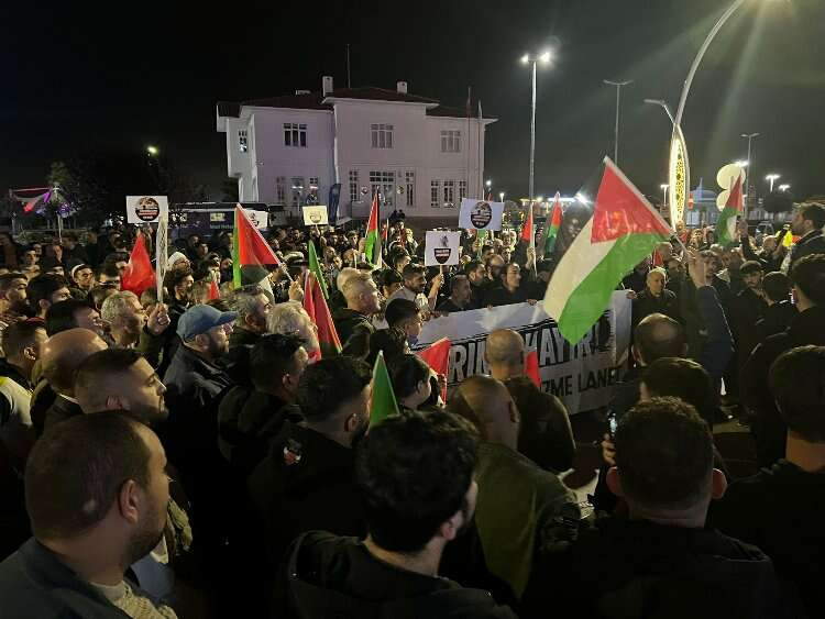 Ellerinde Filistin bayrakları taşıyan çok sayıda vatandaş, “Katil İsrail Filistin’den defol” ve “Mehmetçik Gazze’ye” sloganları atarak Filistinli Müslümanlara destek verdiler.