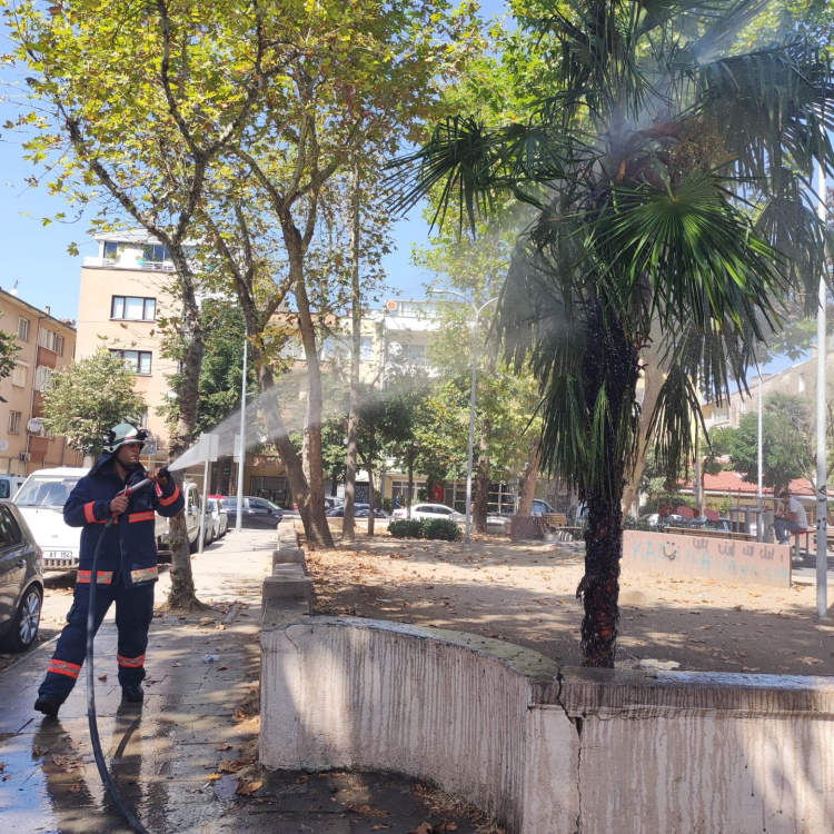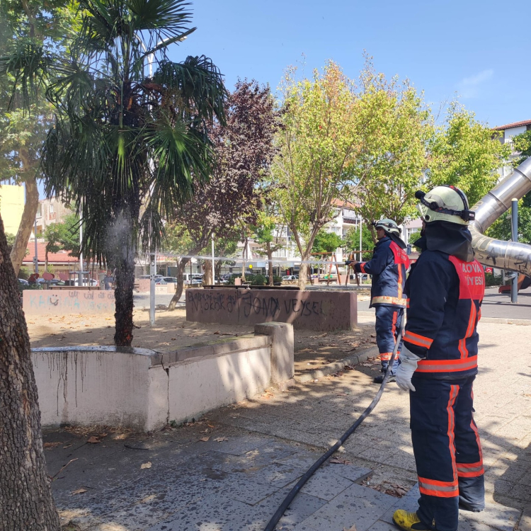Fevzi Çakmak Mahallesi’nde bulunan Abdullah Baştürk Çocuk Parkı’nda çıkan yangında bir palmiye ağacı, görgü tanıklarının ifadesine göre çocuklar tarafından yakıldı.