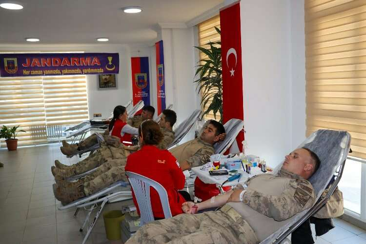 Kan bağışı faaliyeti, Yalova İl Jandarma Komutanlığı kışlasında gerçekleştirildi. Jandarma personeli, vatanı, bayrağı ve milleti uğrunda hiç çekinmeden kanını ve canını feda eden şehit ve gazilerin izinden giderek zor durumda olan vatandaşlara yardım eli uzattı.