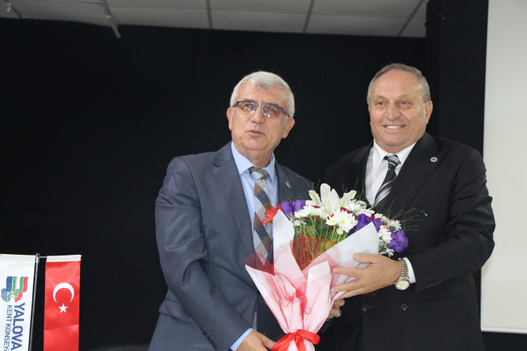 Yalova Kent Konseyi Başkanlığı’na seçilen Kenan Engin düzenlenen törenle görevi Mustafa Kandemir’den devraldı